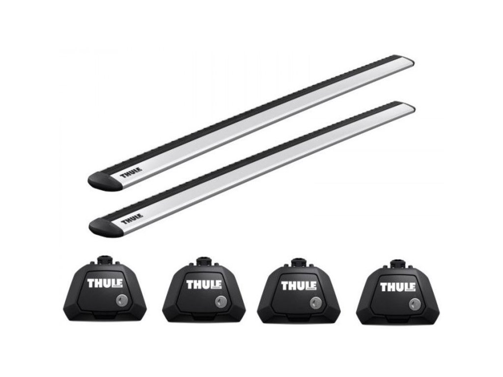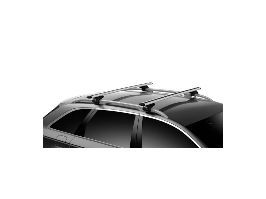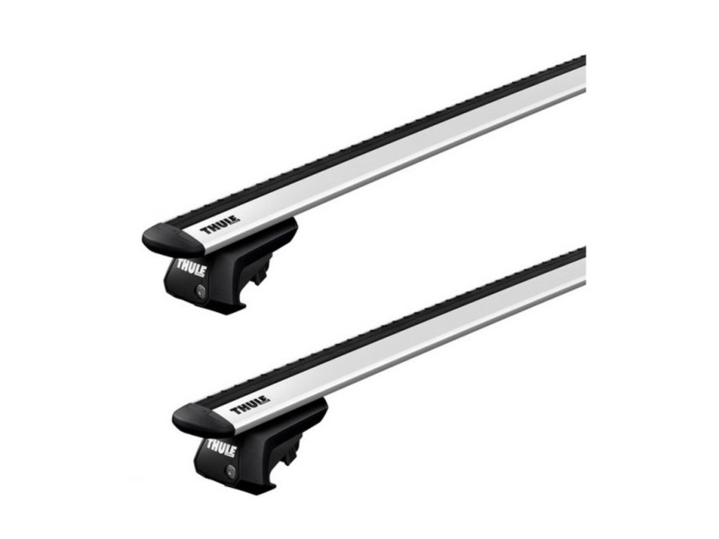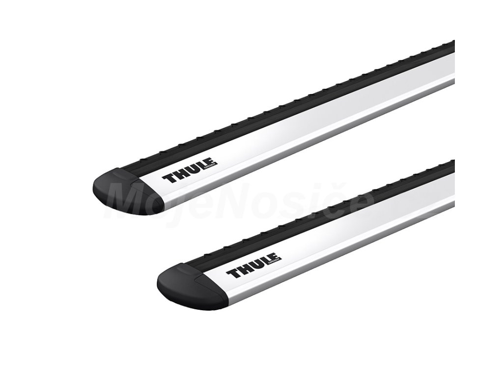Sada příčníků se skládá z patek THULE 7104 + hliníkové aerodynamické tyče Thule WingBar Evo 7115 o délce 150 cm.