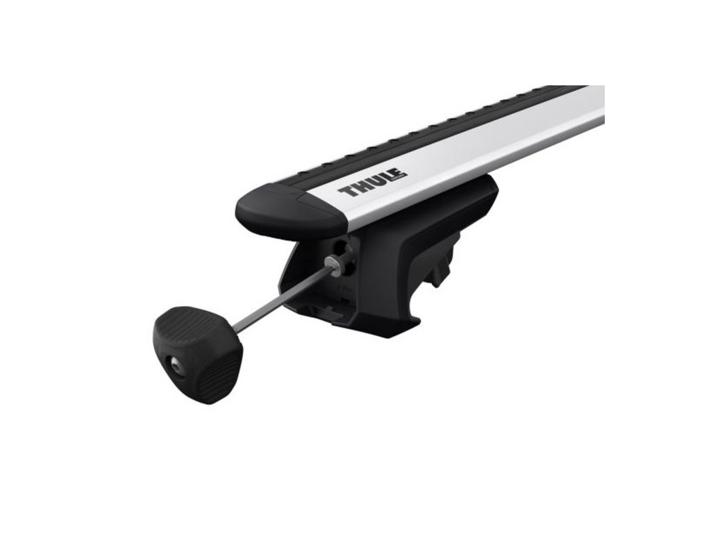 Příčníky THULE na vystouplé podélníky. Nosiče jsou uzamykatelné s jednoduchou montáží za pomoci klíče s ergonomickou rukojetí a indikátorem dotažení.