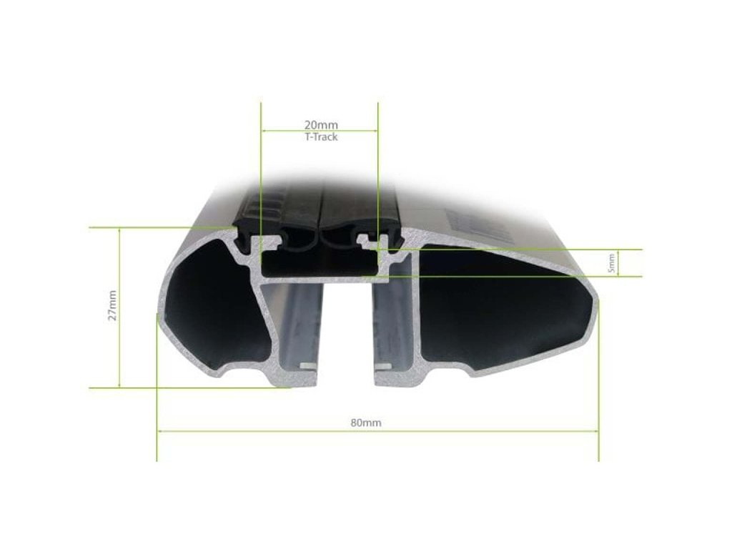 - Horní T-drážka je rozměrově kompatibilní s příslušenstvím výrobců Thule, Atera, Hakr, Menabo, Neumann