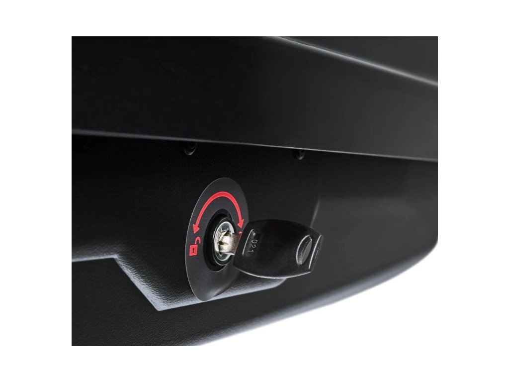 Tento spolehlivý box vyniká hezkým designem a výbornými aerodynamickými vlastnostmi. Je vybaven zámkem proti krádeži. Vykazuje nízký odpor vzduchu i hluku. K upevnění boxu na vozidlo není potřeba nářadí. Je vybaven nejmodernějším systémem vzpěr a spolehlivým upínáním pomocí U sponek.