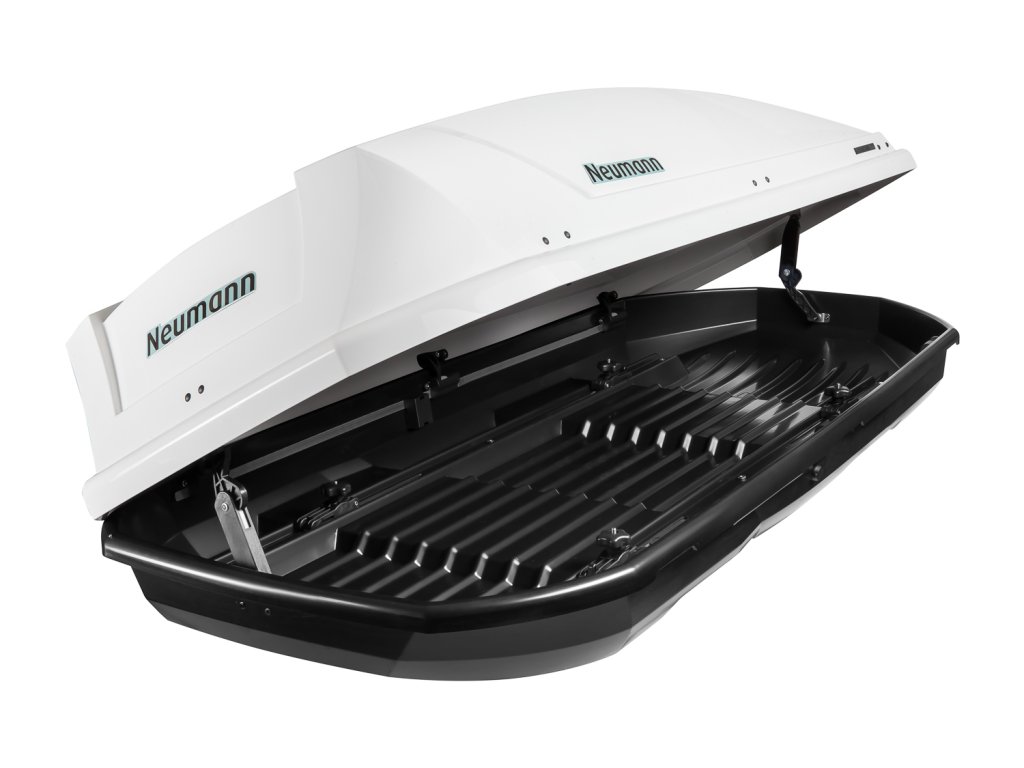 Autobox NEUMANN Adventure TEF 205 bílý lesk s oboustranným otevíráním a patentovaným rychloupínacím systémem Torque Easy Fix označovaný jako TEF.