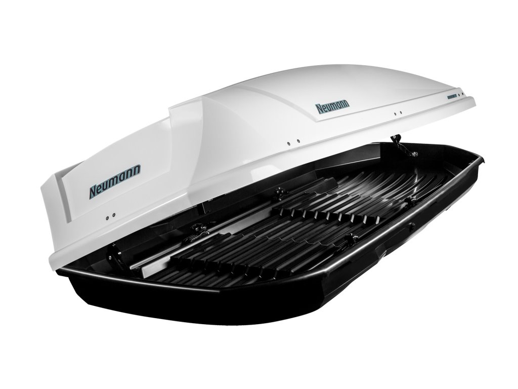 Autobox NEUMANN Adventure Top 230 bílý lesk s oboustranným otevíráním a patentovaným rychloupínacím systémem Torque Easy Fix.