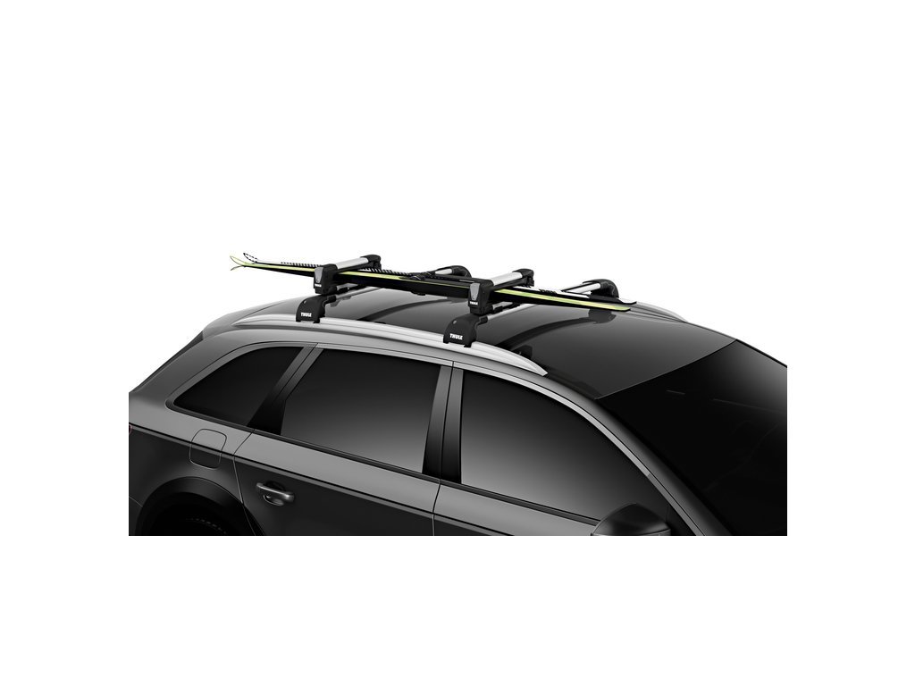 Thule Snowpack 7322 je střešní nosič lyží s šířkou přepravní plochy 25 cm, což postačuje k přepravě 2 párů carvingových lyží.