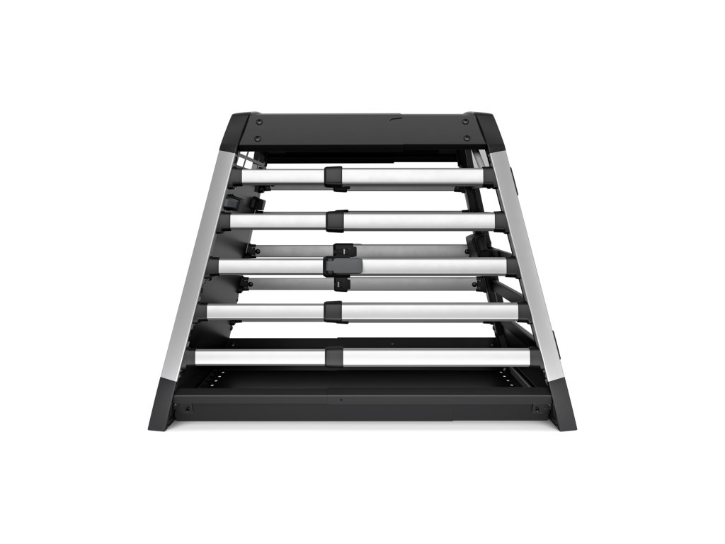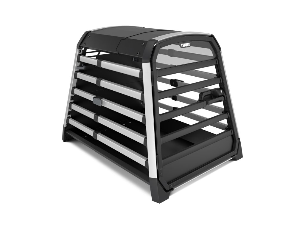 Thule Allax má okénko pro lepší přehled. S ním můžete zkontrolovat svého společníka na cestách kdykoli. Klec Thule Allax se dodává v deseti různých velikostech, všechna se zaoblenými hranami, aby se perfektně hodila do auta i pro vašeho psa. Klec lze hloubkově nastavit, aby se perfektně vešla do zavazadlového prostoru a popruhy zajišťují, že zůstane během jízdy bezpečně připevněna. Dobře navržena tak, že z této prémiové přepravky pro psy nevycházejí žádné zvuky ani chrastění.