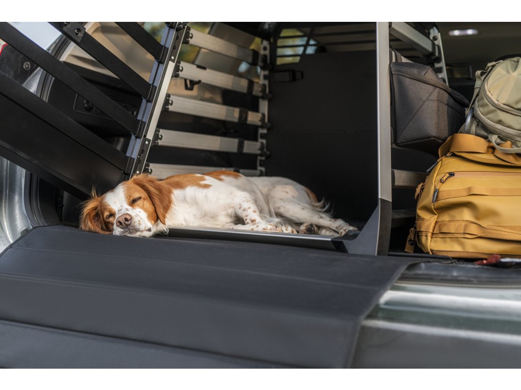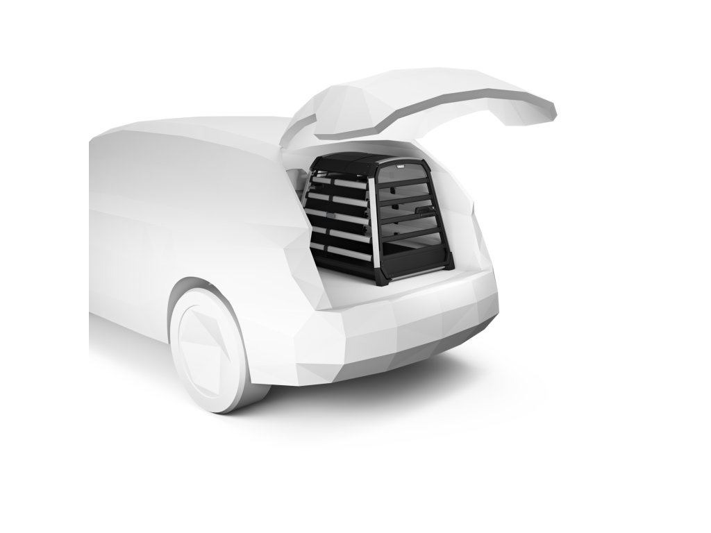 Thule Allax má okénko pro lepší přehled. S ním můžete zkontrolovat svého společníka na cestách kdykoli. Klec Thule Allax se dodává v deseti různých velikostech, všechna se zaoblenými hranami, aby se perfektně hodila do auta i pro vašeho psa. Klec lze hloubkově nastavit, aby se perfektně vešla do zavazadlového prostoru a popruhy zajišťují, že zůstane během jízdy bezpečně připevněna. Dobře navržena tak, že z této prémiové přepravky pro psy nevycházejí žádné zvuky ani chrastění.