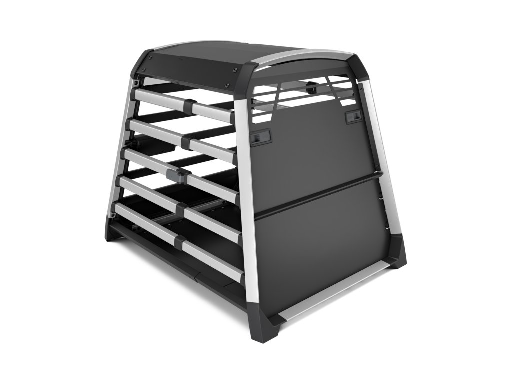 Bezpečná, spolehlivá a snadno použitelná přepravka pro psy. S bezhlučným designem. Rozměry 95-103 x 75 x 78 cm.