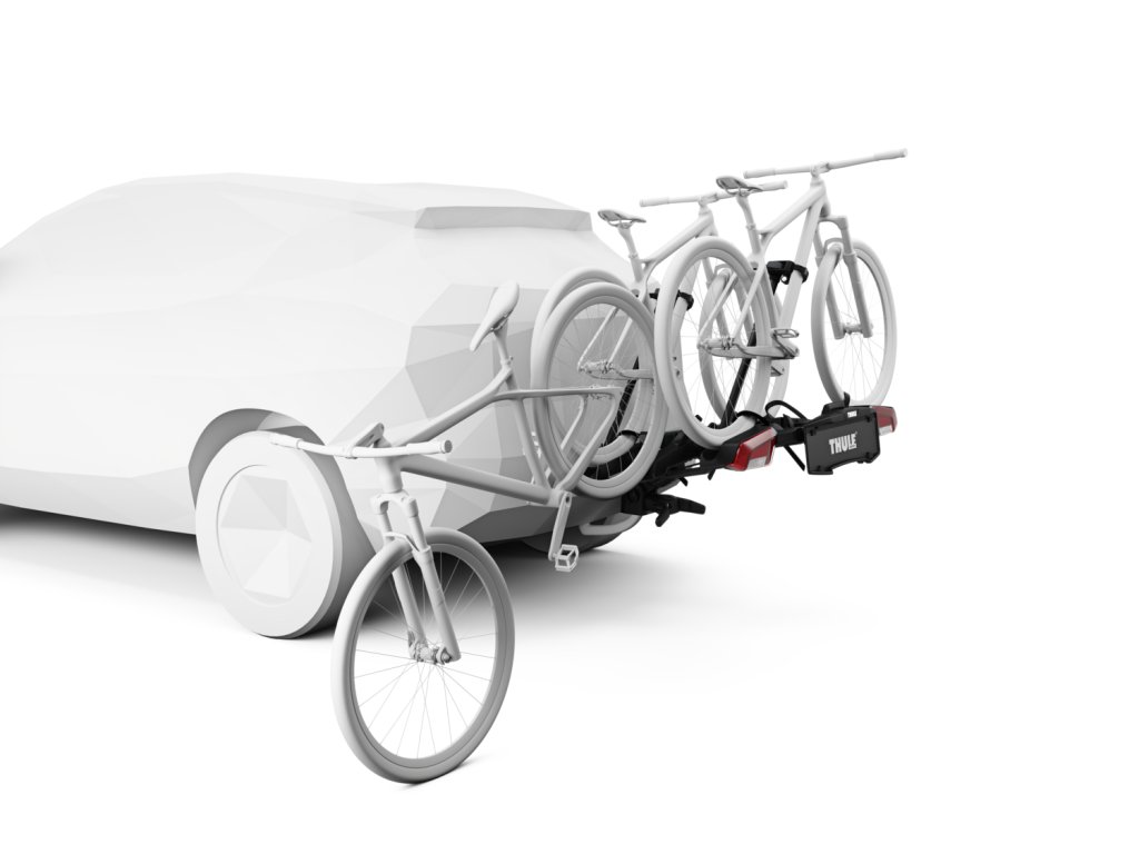 S možností přepravy až tří kol a speciální funkcí sklopení nahoru Thule OutPace zmenšuje svůj rozměr při parkování, čímž minimalizuje riziko poškození. Integrované světla zajišťují viditelnost a bezpečnost.