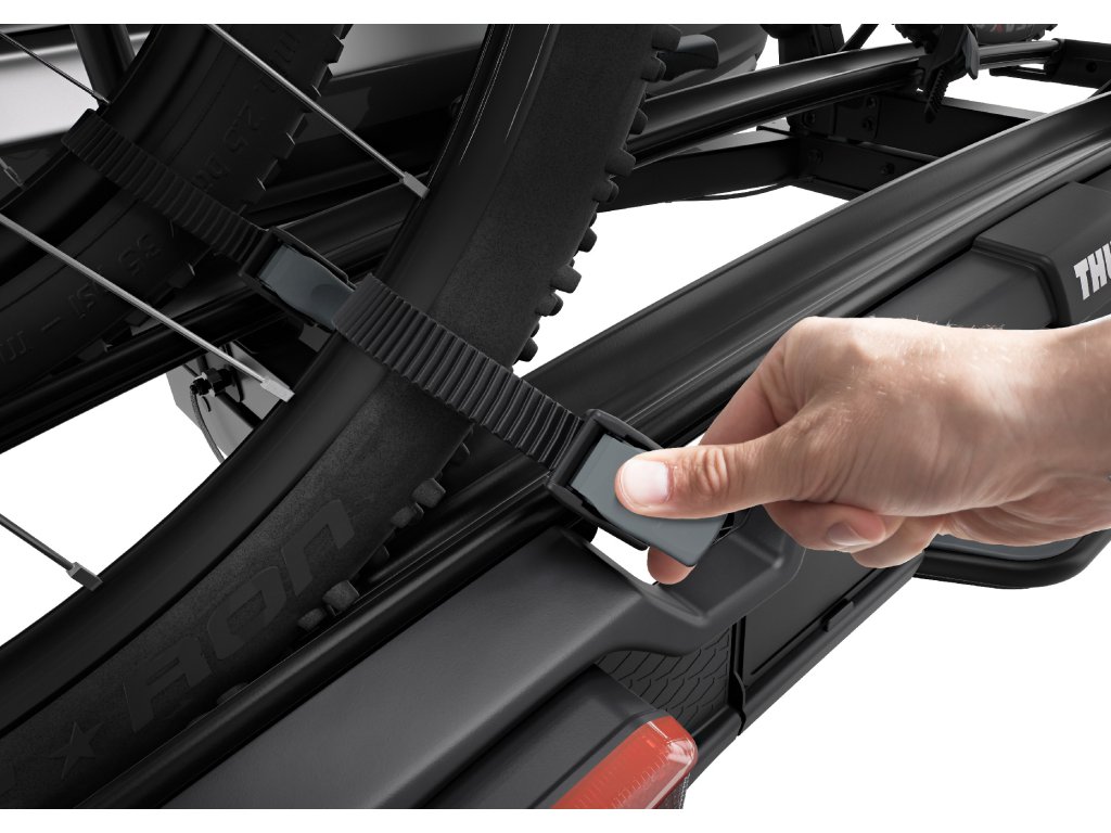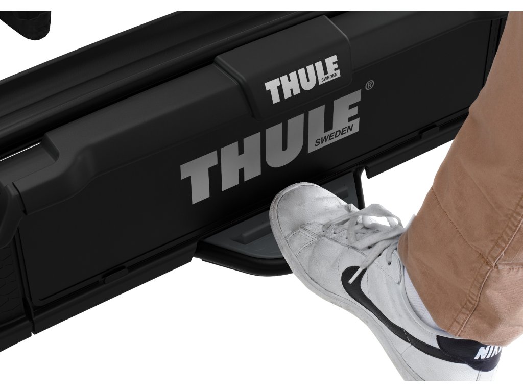 Vzhledem k nabídce různých modelů a adaptérů pro 2 až 4 kola s můžete být jisti, že nosič Thule VeloSpace XT umožní přepravu Vašich kol, bez ohledu na typ. Umožňuje to vysoká nosnost nosiče, extra velká vzdálenost mezi koly a prodloužené hliníkové žlábky na kola společně s ohebnými přezkami a extra dlouhými řemínky na upevnění kol. Získejte více možností s příslušenstvím Univerzálnost Thule VeloSpace XT je zdůrazněna díky řadou příslušenství. S příslušenstvím Thule VeloSpace XT Bike Adapter může Thule VeloSpace XT přepravit další kolo ( přeměna nosiče pro 3 kola na nosič pro 4 kola nebo nosiče pro 2 kola na nosič pro 3 kola). Přidáním boxu Thule BackSpace XT se váš nosič stane ještě univerzálnější. Dokonce můžete přepravovat jedno z vašich kol současně s boxem Thule BackSpace XT. Stačí přidat Thule BackSpace XT Bike Arm a Thule VeloSpace XT Bike Adapter. Soiučasné příslušenství Thule Loading Ramp XT 9172, Thule Transport Wheel 9173 a Thule XXL Fatbike Wheel Straps 985 lze upevnit na nový Thule VeloSpace XT. Vysoká přepravní kapacita umožňuje také přepravu elektrokol a těžkých horských kol. Extra široký prostor mezi držáky plášťů kol (25 cm) pro co nejsnadnější montáž robustních jízdních kol. Přidáním adaptéru pro jízdní kolo Thule VeloSpace XT lze zvýšit kapacitu na 4 jízdní kola Extra široké žlábky pro pláště kol umožňují přepravu velkých kol s rozvorem až 1 300 mm. Nastavitelné podtlakové přezky s extra dlouhými popruhy pro ráfky umožňují snadné upevnění kol se širokými pneumatikami (až 4.7palcovými) Díky stabilitě nezajištěné přípojky na tažném zařízení je snadná montáž i nastavení nosiče kol před uzavřením zajišťovací páky Důmyslný systém sklápění ovládaný nožním pedálem umožňuje snadný přístup do zavazadlového prostoru i tehdy, jsou-li připevněna kola Kola lze uzamknout k cyklistickému nosiči a cyklistický nosič lze uzamknout k tažnému zařízení (zámky jsou součástí balení). V kombinaci s boxem Thule BackSpace XT umožňuje vytvoření snadno přístupného univerzálního nosiče pro rozšíření úložného prostoru vozidla o 300 l Snadné upevnění kol díky odnímatelným držákům rámu vybaveným růžicí s omezovačem momentu utažení Thule AcuTight, který cvakne, jakmile je kolo optimálně upevněno. - Vysoká přepravní kapacita umožňuje také přepravu elektrokol a těžkých horských kol. - Přidáním adaptéru pro jízdní kolo Thule VeloSpace XT lze zvýšit kapacitu na 4 jízdní kola - Extra široké žlábky pro pláště kol umožňují přepravu velkých kol s rozvorem až 1 300 mm. - Nastavitelné podtlakové přezky s extra dlouhými popruhy pro ráfky umožňují snadné upevnění kol se širokými pneumatikami (až 4.7palcovými) - Snadné upevnění kol díky odnímatelným držákům rámu vybaveným růžicí s omezovačem momentu utažení Thule AcuTight, který cvakne, jakmile je kolo optimálně upevněno - Díky stabilitě nezajištěné přípojky na tažném zařízení je snadná montáž i nastavení nosiče kol před uzavřením zajišťovací páky - Důmyslný systém sklápění ovládaný nožním pedálem umožňuje snadný přístup do zavazadlového prostoru i tehdy, jsou-li připevněna kola. Velký úhel sklopení umožňuje otevírání i velmi velkých zadních dveří - Kola lze uzamknout k cyklistickému nosiči a cyklistický nosič lze uzamknout k tažnému zařízení (zámky jsou součástí balení).