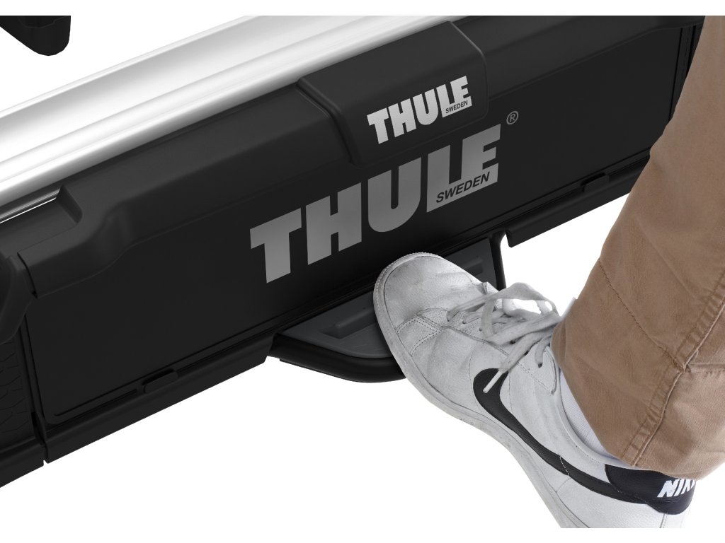 Vzhledem k nabídce různých modelů a adaptérů pro 2 až 4 kola s můžete být jisti, že nosič Thule VeloSpace XT umožní přepravu Vašich kol, bez ohledu na typ. Umožňuje to vysoká nosnost nosiče, extra velká vzdálenost mezi koly a prodloužené hliníkové žlábky na kola společně s ohebnými přezkami a extra dlouhými řemínky na upevnění kol. Získejte více možností s příslušenstvím Univerzálnost Thule VeloSpace XT je zdůrazněna díky řadou příslušenství. S příslušenstvím Thule VeloSpace XT Bike Adapter může Thule VeloSpace XT přepravit další kolo ( přeměna nosiče pro 3 kola na nosič pro 4 kola nebo nosiče pro 2 kola na nosič pro 3 kola). Přidáním boxu Thule BackSpace XT se váš nosič stane ještě univerzálnější. Dokonce můžete přepravovat jedno z vašich kol současně s boxem Thule BackSpace XT. Stačí přidat Thule BackSpace XT Bike Arm a Thule VeloSpace XT Bike Adapter. Soiučasné příslušenství Thule Loading Ramp XT 9172, Thule Transport Wheel 9173 a Thule XXL Fatbike Wheel Straps 985 lze upevnit na nový Thule VeloSpace XT. Vysoká přepravní kapacita umožňuje také přepravu elektrokol a těžkých horských kol. Extra široký prostor mezi držáky plášťů kol (25 cm) pro co nejsnadnější montáž robustních jízdních kol. Přidáním adaptéru pro jízdní kolo Thule VeloSpace XT lze zvýšit kapacitu na 4 jízdní kola Extra široké žlábky pro pláště kol umožňují přepravu velkých kol s rozvorem až 1 300 mm. Nastavitelné podtlakové přezky s extra dlouhými popruhy pro ráfky umožňují snadné upevnění kol se širokými pneumatikami (až 4.7palcovými) Díky stabilitě nezajištěné přípojky na tažném zařízení je snadná montáž i nastavení nosiče kol před uzavřením zajišťovací páky Důmyslný systém sklápění ovládaný nožním pedálem umožňuje snadný přístup do zavazadlového prostoru i tehdy, jsou-li připevněna kola Kola lze uzamknout k cyklistickému nosiči a cyklistický nosič lze uzamknout k tažnému zařízení (zámky jsou součástí balení). V kombinaci s boxem Thule BackSpace XT umožňuje vytvoření snadno přístupného univerzálního nosiče pro rozšíření úložného prostoru vozidla o 300 l Snadné upevnění kol díky odnímatelným držákům rámu vybaveným růžicí s omezovačem momentu utažení Thule AcuTight, který cvakne, jakmile je kolo optimálně upevněno.
